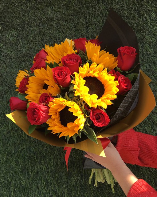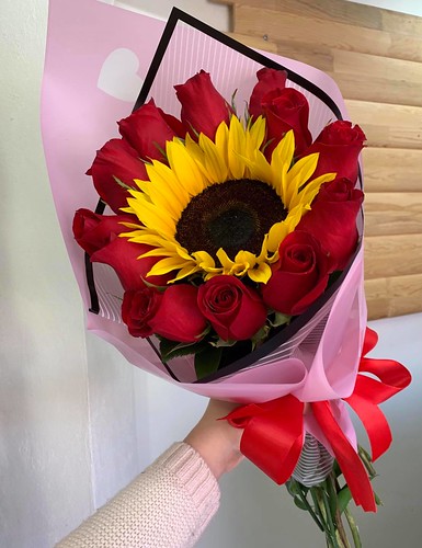 Ramo de Rosas y Girasol